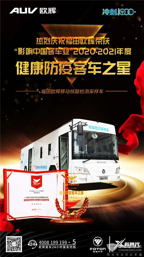 日前,福田欧辉客车佳讯连连,先后斩获由中国商用车品牌营销盛典组委会颁发的中国商用车卓越产品奖——新能源大型城市客车之王,和由影响中国客业系列活动组委会颁发的健康防疫客车之星奖。