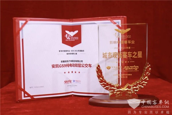 在同期举行的“中国客车用户满意度调查”评选中,凭借优秀的产品力与良好的用户口碑,安凯A9豪华客车、安凯GS9纯电动双层公交车、安凯无人驾驶客车分别荣获2020-2021年度“高端旅游客车之星”、“城市观光客车之星”、“无人驾驶客车示范之星”三项大奖,三款“高精尖”产品实力领跑中国客车细分市场。
