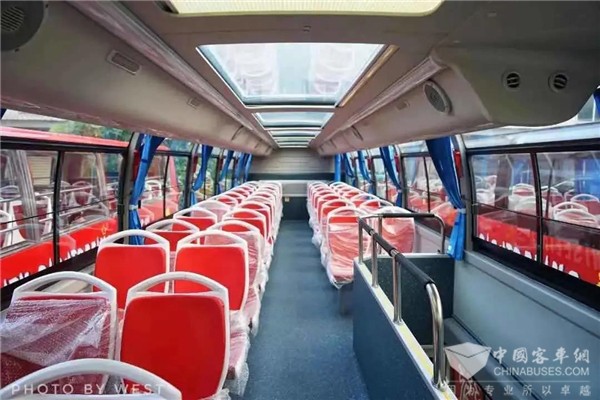 安凯GS9纯电动双层公交拥有“超高颜值”和“丰富内涵”。车身饱满挺拔,采用大幅观景窗和全景天窗,配有高铁式遮阳帘,整车通透明亮,开阔的观景视野大大提升了乘客的观光体验。为了给乘客提供更加安全、便捷、舒适的乘车体验,双层巴士配置了高档软座椅,设有USB充电插口,专设残疾人乘车区和无障碍乘坐设施,最大程度呵护乘客安全。