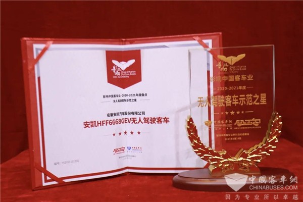 目前,安凯无人驾驶客车已经在深圳、武汉、张家界、天津、合肥、澳门等城市投入运行,并出口日本。凭借强大的产品实力和优秀的运营表现,安凯无人驾驶客车赢得了用户和市场的广泛认可,并先后荣获“首届中国国际智能驾驶商用车大赛技术领先奖”、“2020年度车联网创新产品”等称号。