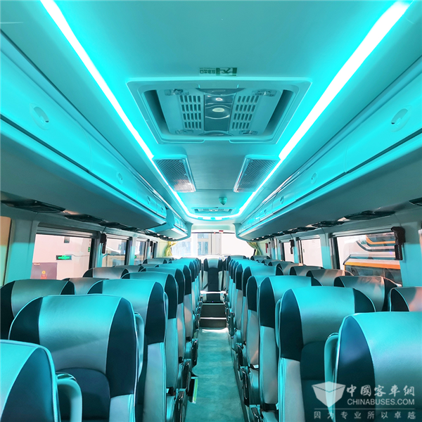 车内配备高靠背豪华舒适座椅、拥有风道带行李架、遮阳帘等设施,打造安静舒适的乘坐环境;以驾乘体验为先,提升车内的舒适感和安全性、配备按摩椅式驾驶座减少旅途疲劳,座椅后装置车载小桌板、USB接口及阅读灯等个性化设备,展现人文关怀,它是一颗“高端”的星。