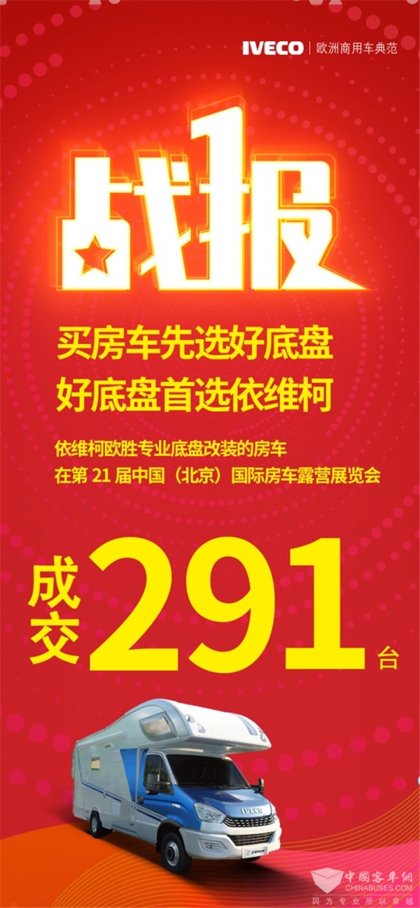 在刚刚结束的第21届中国(北京)国际房车露营展览会上,以依维柯专业底盘改装的房车独领风骚,凭借超凡的性能优势,掀起了销售热潮,现场斩获订单近300台!