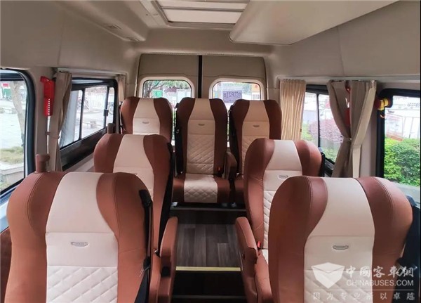 “这款车内顶高1.9米,空间非常大,乘客不弯腰就可以上下车、自由行走。而且航空座椅够宽,前后间距够长,脚部空间伸缩自如。最后一排的座椅都非常舒服,甚至可以‘葛优躺’。”马铁桥评价,桂林骏达定制的这款9座海格睿星,安全系数高,外形俊朗、舒适度相当于公务舱,还有足够空间的行李舱,满足乘客随身携带行李箱存放需求,对于乘客选择定制客运,很有吸引力。