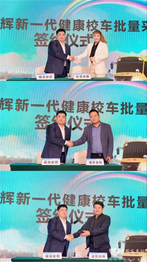 现场发布的这款福田欧辉新一代健康校车,以“健康安心、安全放心、品质用心、经济省心、智控贴心”五心标准严苛智造,面向中小学校、幼儿园以及专业化校车运营公司定向研发,是一款真正让孩童开心、家长放心、学校安心的专用校车。活动现场还进行了福田欧辉与辰溪安捷、城步安航、益阳启胜等校车公司批量校车采购签约仪式。