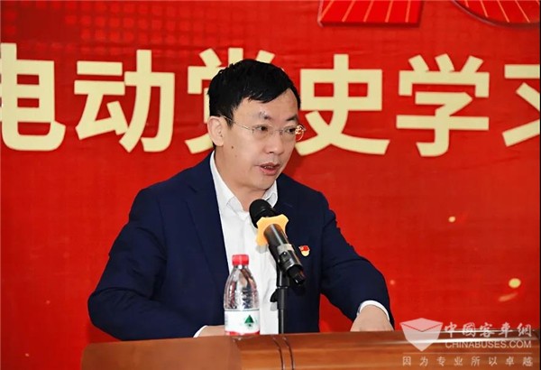 中车电动党委副书记、纪委书记、工会主席李群波传达习近平总书记在党史学习教育动员大会上的重要讲话精神、中车集团党史学习教育动员部署会会议精神。