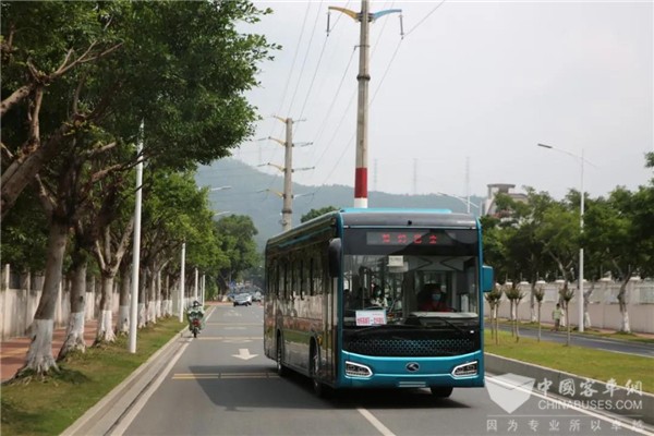 线路上的金龙地铁巴士XMQ6115FGBEV运行稳健