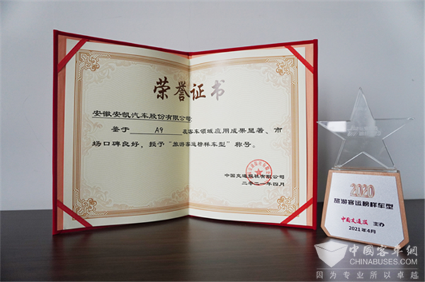 最终,凭借优异的产品品质以及良好的用户口碑,安凯客车一举揽获两项重量级荣誉奖项:安凯A6被推选为“班线客运榜样车型”,安凯A9被推选为“旅游客运榜样车型”。
