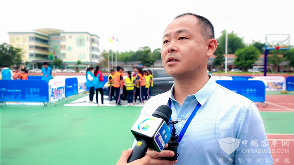 校长梁永泽发表讲话,“每年大量的儿童交通事故却给万千家庭带去巨大伤痛,很多伤痛背后的原因仅仅是没有掌握正确的交通安全知识。多年来,我们一直高度重视交通安全宣传教育,积极落实上级决策部署,构建了多层次、多元化交通安全教育体系,有效提升了师生交通安全意识。本次宇通壹基金儿童交通安全公益活动将实用又有趣的交通安全教育方案带到我校,用体验式教育为学生全面普及交通安全知识,拓宽了我们的视野,革新了我们的理念,更为我校创办特色平安校园提供了新契机。我们将在各级领导部门、社会各界的引领与关怀下,不忘初心,继续开展好学生交通安全教育,创新校园交通安全教育模式,守护孩子们的金色童年”。