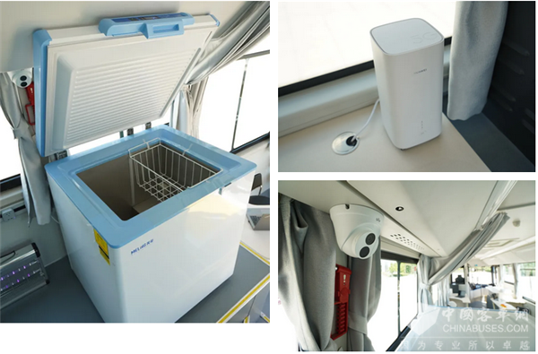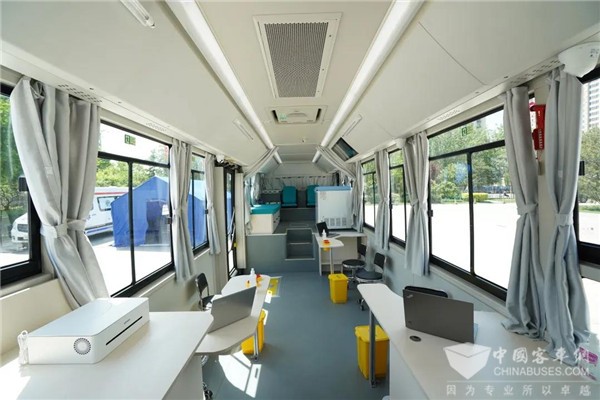 同时,为了确保医护人员与接种人员的健康,欧辉移动疫苗接种车配备了超级健康客车强大的“超级测温拦截系统”、“超级空气滤净系统”、“超级紫外抗菌系统, 实现全方位安全保障。