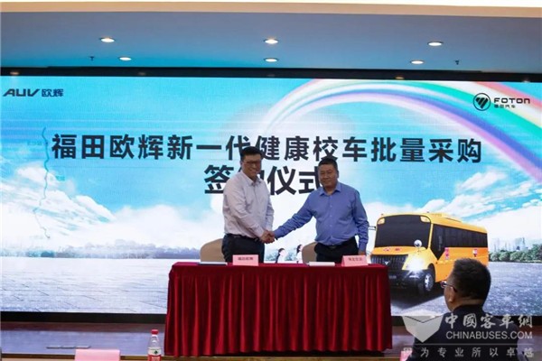 福田欧辉新一代健康校车系列产品聚焦孩童健康出行,针对校车市场用户实际运营场景定制研发,产品集健康环保、安全可靠、智能舒适为一体,在设计、驾控、工艺及使用价值等方面焕新升级,同时加强整车轻量化设计,严控经营成本,比标杆节油10%以上,以品质和实力获得保定及华北地区客户的高度认可。继在华中、华南收获批量订单后,本次发布会现场,福田欧辉与保定交运、正定龙飞、三河新月、梦帆校车、商丘路驰等客户代表签约,不断扩大业务规模和市场份额,以健康引领华北校车市场新未来。