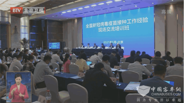 2021年5月10日至13日,“全国新冠病毒疫苗接种工作经验现场交流培训班”在京举办,共有100多位来自各省、自治区、直辖市及新疆生产建设兵团应对新冠疫情联防联控机制领导小组或指挥部负责人参与。活动期间,与会者观摩与调研了位于北京歌华开元大酒店、北京月坛体育馆接种点及北京展览馆接种点三地展示的福田欧辉移动疫苗接种车,亲身体验该车将5G与AI融合后的诸多新技术、新应用。