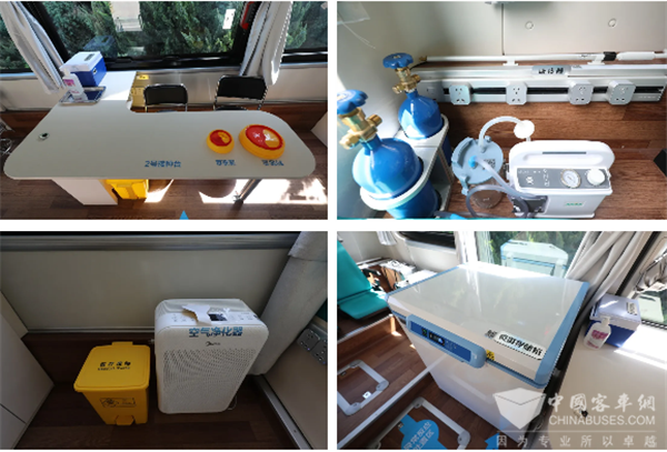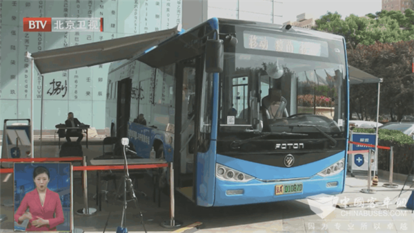 据现场福田欧辉工作人员介绍,全新升级的福田欧辉移动疫苗接种车严格按照国家疫苗接种流程进行设计,车辆内部设置登记区、接种区、疫苗存储区、异常反应处置区等多个区域,车外辅以接种等待区和留观区。