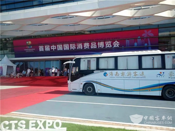 凭借服务博鳌等高规格大型盛会的服务保障经验、高品质的服务保障车辆、高标准的服务水平,豪阳旅游巴士成为首届消博会唯一一家大客车通勤服务保障企业。据豪阳旅游巴士车队长陈朝阳介绍,此次公司入选消博会服务保障车辆全部为苏州金龙12米海悦车型,主要负责江西代表团从酒店到会展中心的往返通勤。