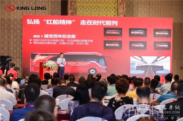 值得一提的是,活动开始前,献礼建党100周年的惊喜“快闪”《我和我的祖国》嘹亮歌声响彻会场,唱出了金龙人的初心与热情。据了解,这是金龙客车献礼建党百年系列活动策划之一,用歌声传递深情,把来自金龙客车最真挚的祝福献给党和祖国。