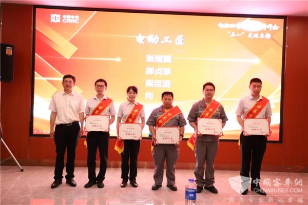 随后对公司第二届十大杰出青年、电动工匠、电动金叶奖、优秀基层团组织、优秀团干等先进进行颁奖。