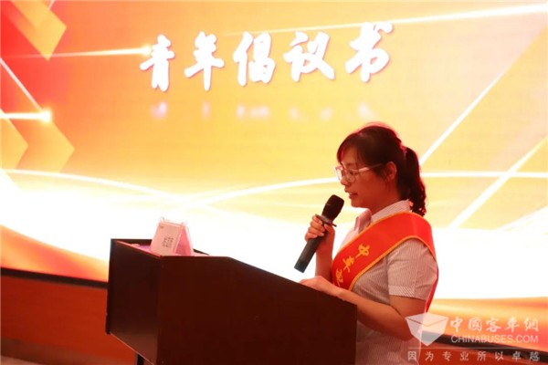 “电动十杰”代表卢照云宣读《赓续红色血脉 ,争做杰出青年》倡议书