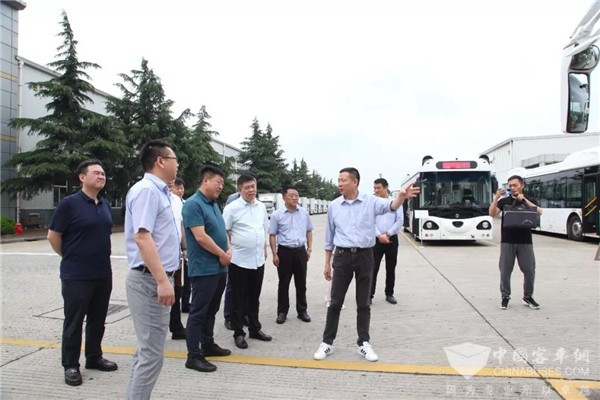 李文斌书记一行首先参观了上海申龙客车有限公司的新能源及氢燃料产品,包括由深兰科技与申龙客车联手打造的熊猫智能公交。熊猫公交可爱的造型、高科技的配置获得了李文斌书记的充分认可。