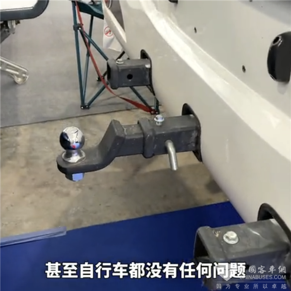 车辆尾部加了一个三眼的拖车杠,可装载摩托车或自行车出行
