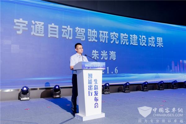 在发布会现场,郑州通济智能科技有限公司总经理朱光海发布了宇通自动驾驶研究院建设成果。