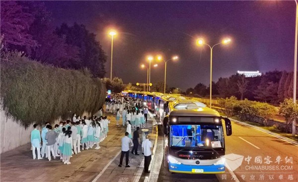 欧辉新能源客车鸟巢外集结点等候接驳庆典工作者