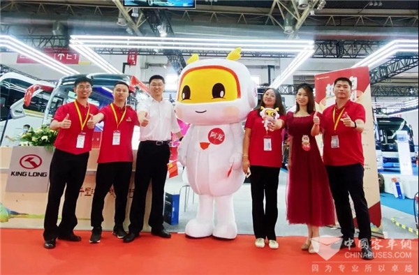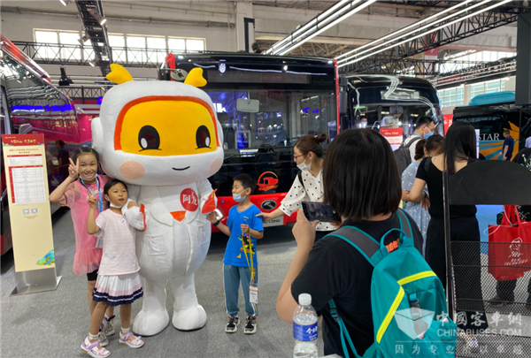 除了捷冠5代、碳纤维复材地铁巴士,金龙客车IP形象阿龙也在此次展会上首次与大家线下见面,阿龙可爱又富有亲和力的形象,受到了现场“粉丝们”的青睐,与“粉丝们”的互动,使现场气氛更加的活跃。