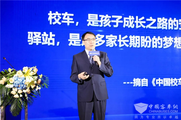 宇通客车国内营销总监孙希顺在致辞时表示:“作为校车行业的领军品牌,宇通时刻不忘责任担当,多次主办校车行业高峰论坛,持续为行业发展注入新思路和新动力。从2005年开始研发国内第一辆专业校车,宇通就始终坚持造‘好校车’,呵护孩子们安全健康成长。十七年来,宇通不断超越自我,对校车产品持续进行迭代升级,并以整体解决方案破解市场痛点和难点,与校车运营企业同进退、共成长。未来,宇通也将继续携手各界,以更加优质的产品,共同守护孩子们的安全、美好出行。”
