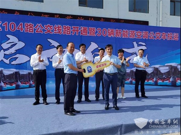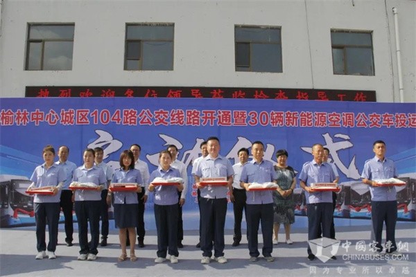 近日,陕西榆林举行榆林中心城区新开通104路公交线路暨新能源空调公交车投运启动仪式,副市长陈忠、亚星客车总经理董长江出席启动仪式。