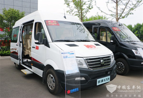其中,中通客车2021年推出的高端定制轻型客车产品——瑞通V59,在现场可谓“炙手可热”,柴油版和纯电版这两款动力车型深刻诠释了始于颜值、终于“才华”的高端定制体验。