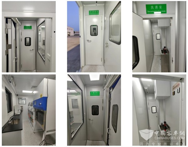 其中,独立式样本传递通道,以及给排水、废水废气处理等系统设置,可有效防止病毒外泄,保证车内及周边人员的健康与安全。