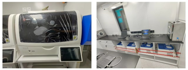 产品配备“高通量核酸提取仪、荧光PCR分析仪”、5G车载信息网络等系统,可对采集样本进行智能、快速的“云分析”。