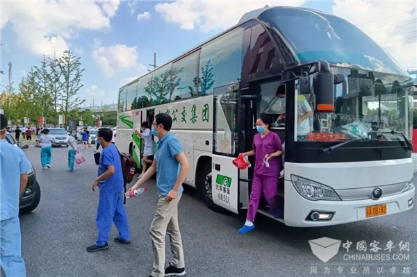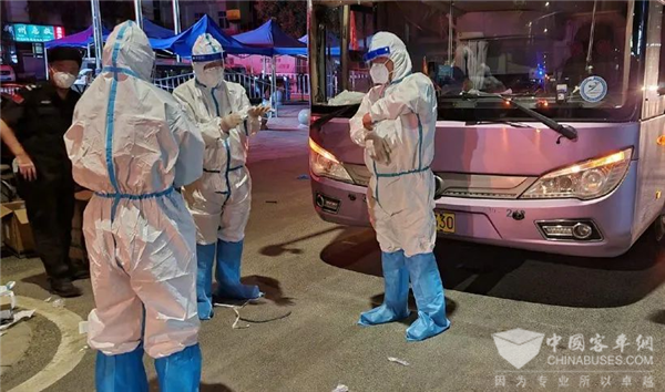 为了迅速完成核酸检测任务,江宁公交集团还特派专用车辆和司机护送防疫医护人员,方便他们快速到达核酸检测地。