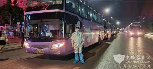 首先,郑州客运十公司克服困难以最快的速度抽调驾驶员和4台大巴车辆,且将车辆进行消杀并备足防疫用品,在37度的高温下,驾驶员们穿上包裹严实的防护服,以严格的防疫措施执行转运任务。