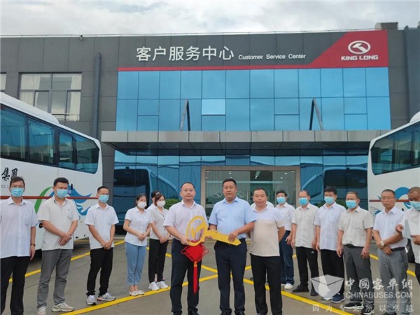 仪式现场,马总一行对新车颇为赞许,同时也期待新车在实际运营中的卓越表现!金龙客车国内营销副总经理吴炜琪向马总交付新车钥匙,并郑重表示,交付之际即是深化合作之始,金龙客车将秉持“龙悦”服务“152必到达,724不打烊”承诺,以优质的服务支持临夏花儿旅游!