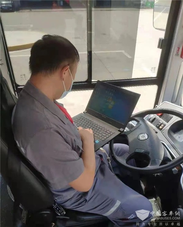 售后服务工程师耿永超、杨翼超正在对整车进行新的程序刷写与更新,汗流浃背是他们连续几场阵雨,并没有降低夏秋交替的热度,厉害的“秋老虎”把大地蒸得滚烫。高温的挑战,让不少户外作业者感到畏惧,也使中车电动的一线工作者备受严峻“烤”验。然而,就有这样一群售后服务工作者,在客户最需要的时候“奔赴现场”。