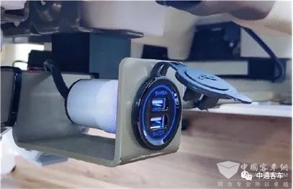 前门入口处左侧设储物箱,有效利用空间的同时为工作人员提供更多储物空间;乘客椅带2个USB充电接口,让乘客不必担心手机或平板电量消耗,卸掉疲惫,乐享精彩。