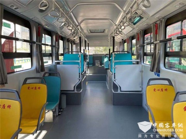 除了碳纤维复材所带来结构优势,本次交付的新能源巴士与传统公交车最大的区别在于其采用地铁式车厢的设计理念,整车搭载轮边独立悬架驱动系统,取消了传统车辆必需有的传动轴,车内全平地板、大通道布局,后轮过道达到800mm,实现乘客一步登乘,无障碍快速通行。此外,车辆搭载金龙ECO-Chip易驱3.0新能源管理系统,为乘客带来更高效、安全、舒适的移动出行体验。按8年营运50万公里计算,18辆新型轻量化公交车约节省电能270万度,减少碳排放332吨标准煤。