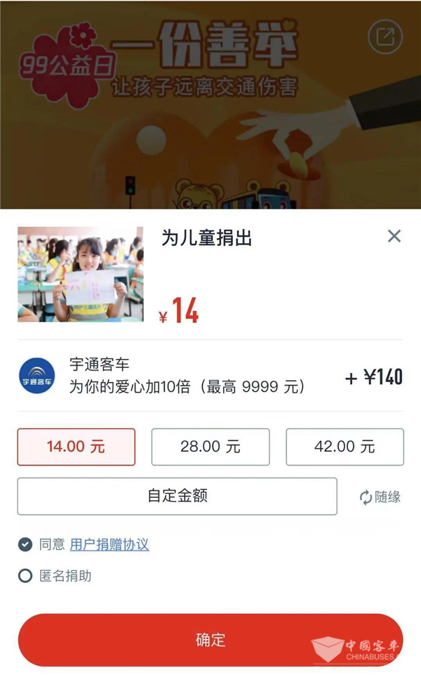 您捐1元,宇通捐10元!