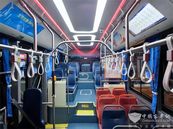 入口处嵌入式投币机,增加了通道宽度,方便乘客上车通行效率。车身高度可调节,一级踏步可低至290mm,方便特需乘客乘车;合理的座椅布局设置,保障乘客通行效率的情况下增加座位数,极大提升公交运营能力。