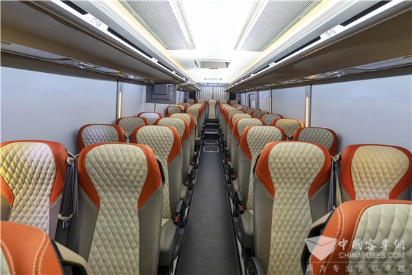 中通客车车内座椅皮革、织物等全部采用专业抗菌材料,通过植入抗菌丝或抗菌涂料等使得抗菌率达90%以上,避免座舱内细菌、霉菌、病毒等的滋生。同时,CN95认证空调滤芯的应用,还可有效抑制金黄色葡萄球菌、大肠杆菌的抑菌率及白色念珠菌的污染,在发挥过滤功能的同时避免了细菌滋生。