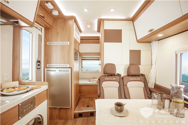 便捷生活配置领域,生活家H90搭载了可实现加热保温的清水箱,内置上汽大通MAXUS原厂研发柴暖技术,在-20℃下,清水箱水温可加热到20℃;同时还配备了进口品牌伟巴斯特驻车燃油加热器、节能静音48V直流变频空调、英得尔152L冰箱、电动升降窗、电动驻车支撑腿、新风换气系统、客厅MAX电动换气扇等房车专用家居设备,为房车旅行增添更具格调的精致体验。
