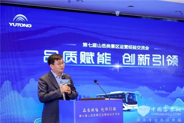 宇通客车股份有限公司党委副书记王善冲在致辞时表示:“近两年来,由于新冠肺炎疫情的肆虐,山岳类景区经历了前所未有的困难。宇通作为旅游出行环节的积极参与者和推动者,将与大家同呼吸、共命运,无论是在疫情爆发前的精诚合作,还是在疫情期间的守望相助,以及未来的携手前行,宇通都将与大家站在一起,不断为旅游行业高品质发展提供新产品、新技术、新方案。正所谓,不经一番寒彻骨,怎得梅花扑鼻香,相信在国家各种利好政策的强大支撑下,山岳类景区的发展定会越来越好。”