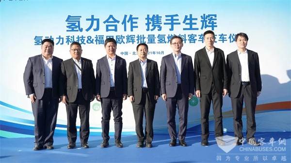 2021年10月21日,氢动力科技&福田欧辉批量氢燃料客车交车仪式在北汽福田总部举行。福田欧辉将30台BJ6116氢燃料客车成功交付国家电投氢能公司旗下氢动力(北京)科技服务有限公司(简称:氢动力科技)。此次交付车型将为冬奥会提供氢能接驳的核心任务,三方的合作将打造世界级绿色出行服务标准,树立我国氢能产业发展新高度。