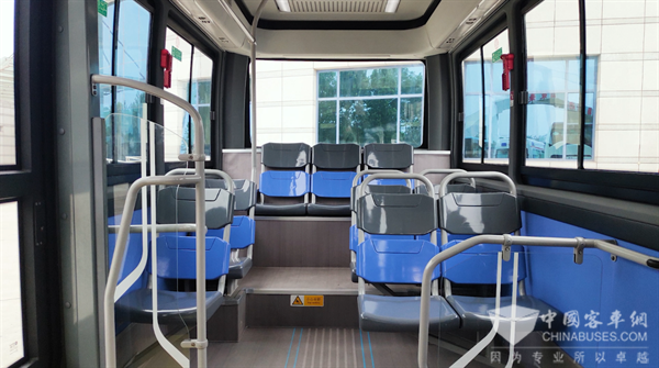 不仅外观时尚、机动灵活,睿通V60在内饰方面也秉承全新的设计理念,更加注重人性化,提高乘客乘坐的便捷和舒适性。其选用豪华多功能内饰:车顶高铁风格的宽灯带、顶中吸音条纹内饰、蓝色氛围灯、乘客区顶部沐浴式出风口…营造出温馨的车厢环境。同时,可选配配备乘客区USB充电接口,更便捷,可选轮椅导板等人性化配置,以细致入微的设计,给乘客提供温暖体贴的乘坐体验。