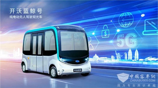 开沃蓝鲸号,是针对通勤、观光、接驳等需求开发的可实现自动循迹、主动避障、自主寻找充电桩等功能的L4级纯电动自动驾驶汽车。
