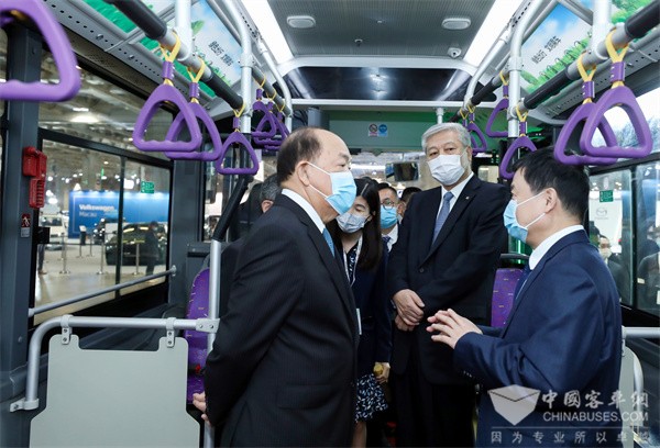 展会期间,澳门特别行政区行政长官贺一诚、南光(集团)有限公司董事长傅建国、澳门公共汽车股份有限公司总经理梁美玲等领导嘉宾莅临中通客车展位,参观试乘中通客车,详细了解了车辆配置及性能,并对中通客车在新能源客车领域取得的成果表示认可和肯定。