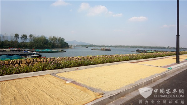 在浙江杭州,第十届杭州富阳•渔山稻香文化节于10月底启幕,富阳渔山、里山、灵桥等乡镇的居民纷纷在路边晒稻谷,金黄的稻米与碧绿的江水共同形成了富春江畔的秋收美景图。为了方便市民们前往稻香节现场,富阳市公共交通有限公司开通由富阳客运站、客运南站至渔山的两条稻香节免费专线。苏州金龙海格纯电动微巴成为此次专线任务的主力车型。另外,由富阳客运南站发往大安顶组团的各条通村巴士,近年也都陆续换上了海格纯电动微巴或天然气公交。除了一两年前就已换新的2357等线之外,开往灵桥观坞村的2117B线也更换为海格新能源车型,当地居民的乘车环境得到了大大改善。