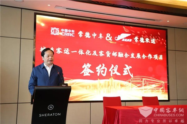 汤祚国在致辞中表示:“城乡客运一体化及客货邮融合发展,是推进城乡融合的内在要求,也是为群众办好事、办实事的重要举措。常德中车与欣运集团签约,对推进常德社会经济发展具有里程碑意义,翻开了常德城乡交通运输事业的新篇章。”