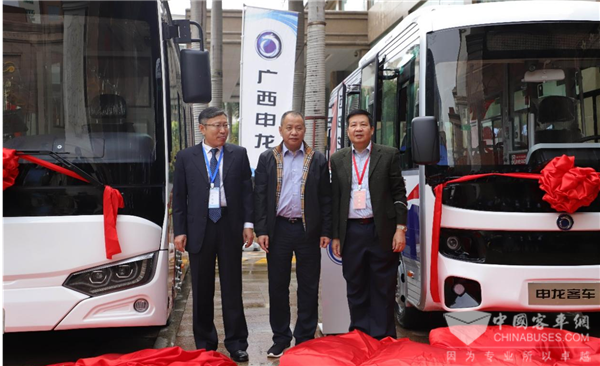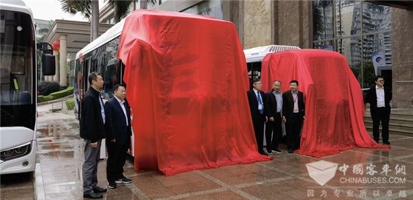 与此同时,发布会邀请了出席会议的自治区交通运输厅、梧州市交通局以及广西公交分会等相关领导共同为本次上市发布的新车进行首发揭幕。