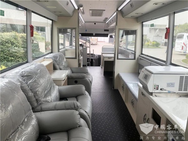 金龙专用车是国内少有的具备完全自主定制生产、改装能力的公司。这款12米采血车由金龙专用车专业研发团队根据客户需求与采血车的特点,综合匹配底盘、外饰、内饰、电器等设计制作而成,整车制加工车间流水线作业,一次成型,避免二次改装对车辆的损害。
