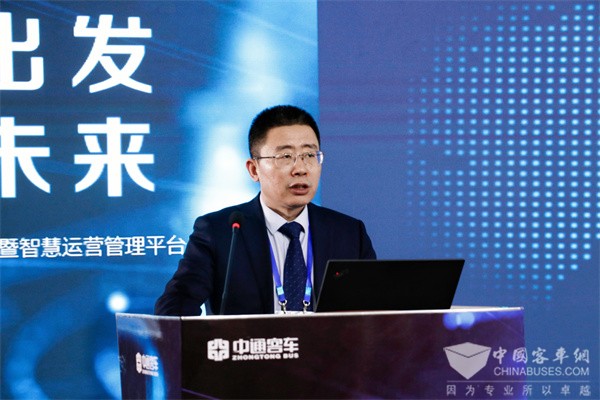 大会上,中通客车副总经理李晨,对中通客车全系产品解决方案及应用价值进行了分享。目前,中通客车拥有6-18米长度段的全系产品,涵盖公路、公交、公商务、校车、物流、专用车等应用领域,以及常规动力、纯电动、氢燃料、混合动力不同动力类型的产品。近年来,中通客车全面发力产品品质,在健康呵护、主被动安全、经济节能、智慧网联、可靠性等方面取得了质的突破,全面提升客户应用及运营价值。